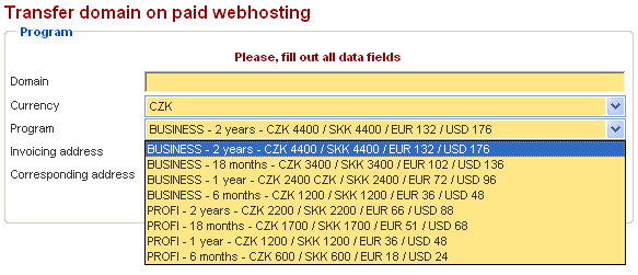 2. Now it is usually sufficient to fill in the domain (which must be hosted at PIPNI) and pick a program according to your requirements.