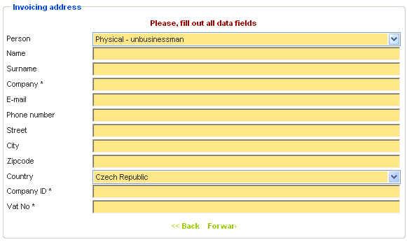 3. In the next phase fill in the ordering party's personal or company information. The invoice will be made out for this person/company. This information