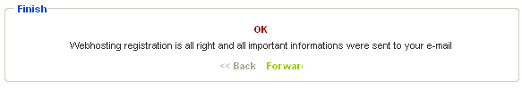 5. As soon as the order is successfully completed, the webpage will show up as an image. Furthermore, you will be sent an e-mail with all critical information on your new hosting including a PDF with the invoice among others.